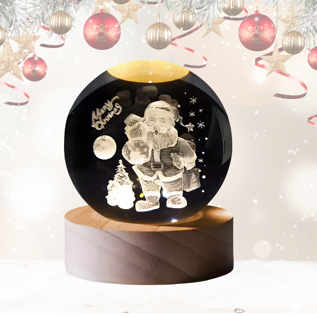 Stvorite toplu, prazničnu atmosferu uz prelepu 3D novogodišnju lampu sa motivom Deda Mraza u staklenoj sferi. Kada se uključi, lampa nežno osvetljava prostor i prikazuje detaljno ugraviran 3D prikaz, stvarajući efekat kao da se scena nalazi unutar kristalne kugle.