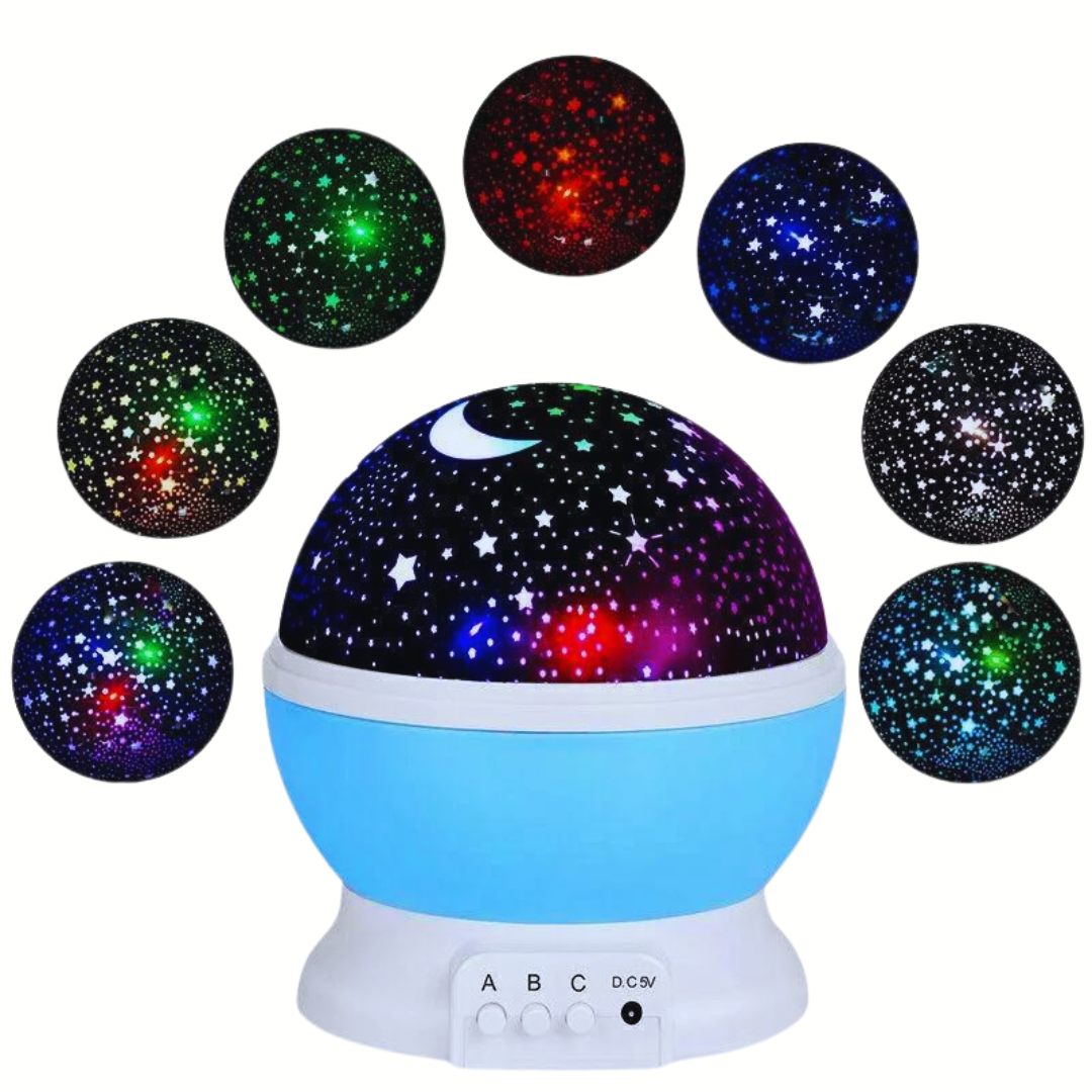 - Projektor sa rotirajućim efektom – stvara prelepo zvezdano nebo na zidovima i plafonu.
